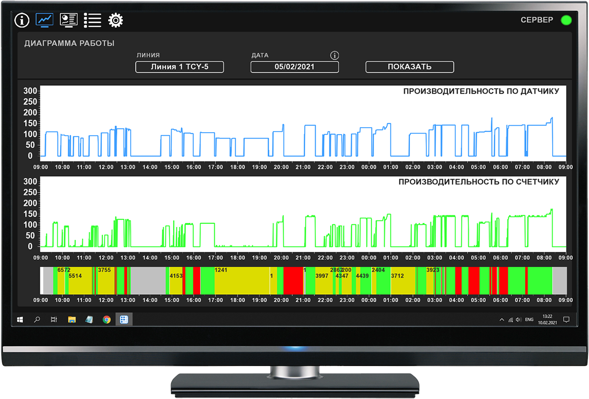 - Сбор сигналов датчиков и расчет производительности