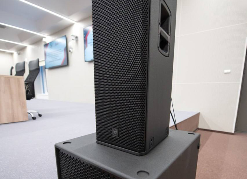 ✔️ система звукоусиления: фронтальная мобильная система для громких мероприятий и систему распределенного звука для рабочих мероприятий. Чтобы устранить в зале эхо и повысить разборчивость звука, в нем была проведена электроакустическая корректировка.